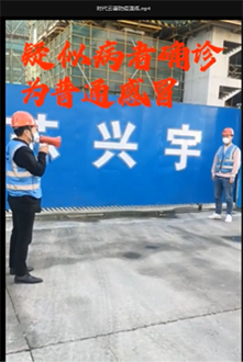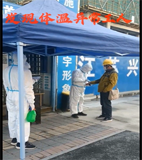 一、下午上班時,防疫小組成員持測溫計,在實名制通道口,對每位進(jìn)入工地工人進(jìn)行體溫測量。突然發(fā)現(xiàn)一位發(fā)燒工人,經(jīng)多次間歇性測量,體溫平均為38.7度,并伴有間斷性咳嗽,經(jīng)防疫小組初步評估,為高度疑似新冠肺炎患者。防疫小組成員立即對該工人進(jìn)行分離出隊伍,詳細(xì)登記個人信息(姓名、班組工種、住宿房間號等),并向防疫小組組長匯報。