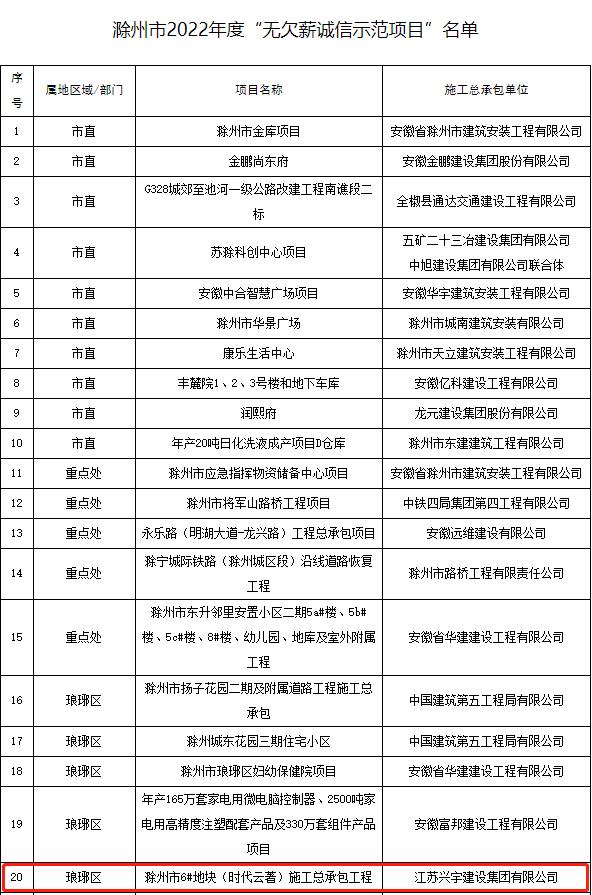 近日,江蘇興宇建設(shè)集團(tuán)有限公司承建的滁州時(shí)代云著項(xiàng)目獲評(píng)滁州市建筑領(lǐng)域“無欠薪誠信示范項(xiàng)目”。滁州市根治拖欠農(nóng)民工工資工作領(lǐng)導(dǎo)小組辦公室在滁州市人力資源和社會(huì)保障局網(wǎng)站進(jìn)行了公示。